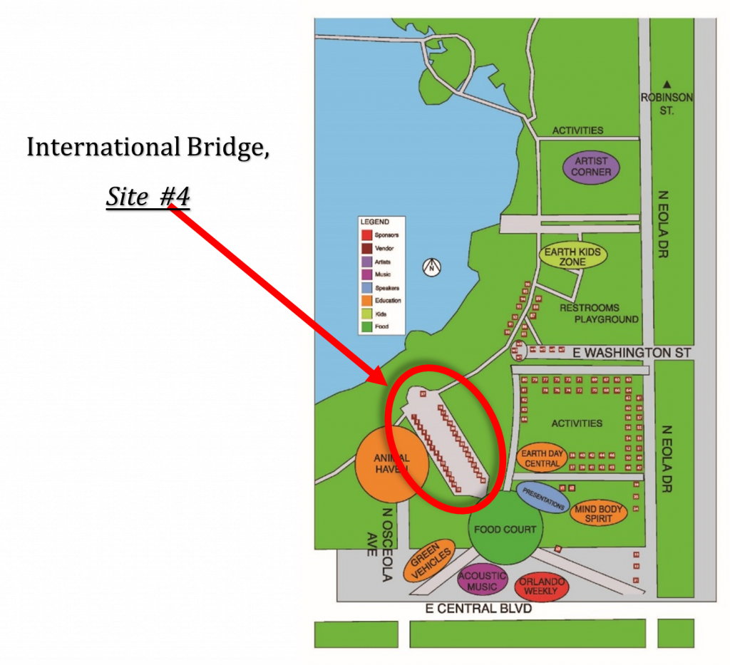 The Orlando Section of the American Chemical Society (ACS) will be participating in the 21st annual Central Florida Earth Day event at Lake Eola Park (east side), 512 E. Washington Street Orlando, FL on Saturday April 25th, 2026 from 10:00 AM – 4:00 PM. The ACS-Orlando booth has been assigned Site #4 in the vendor area located on the international bridge. Please refer to the map below for guidance: